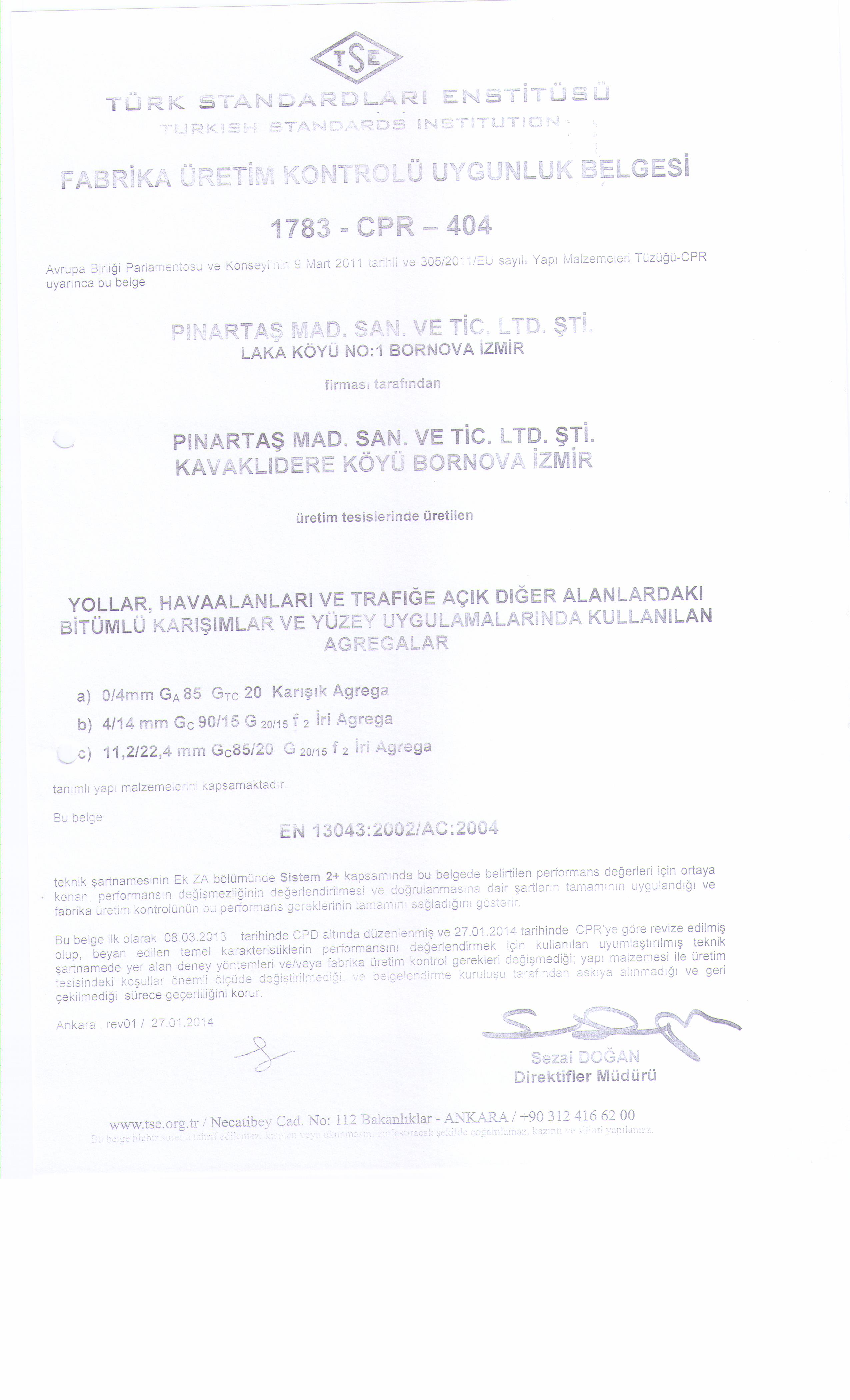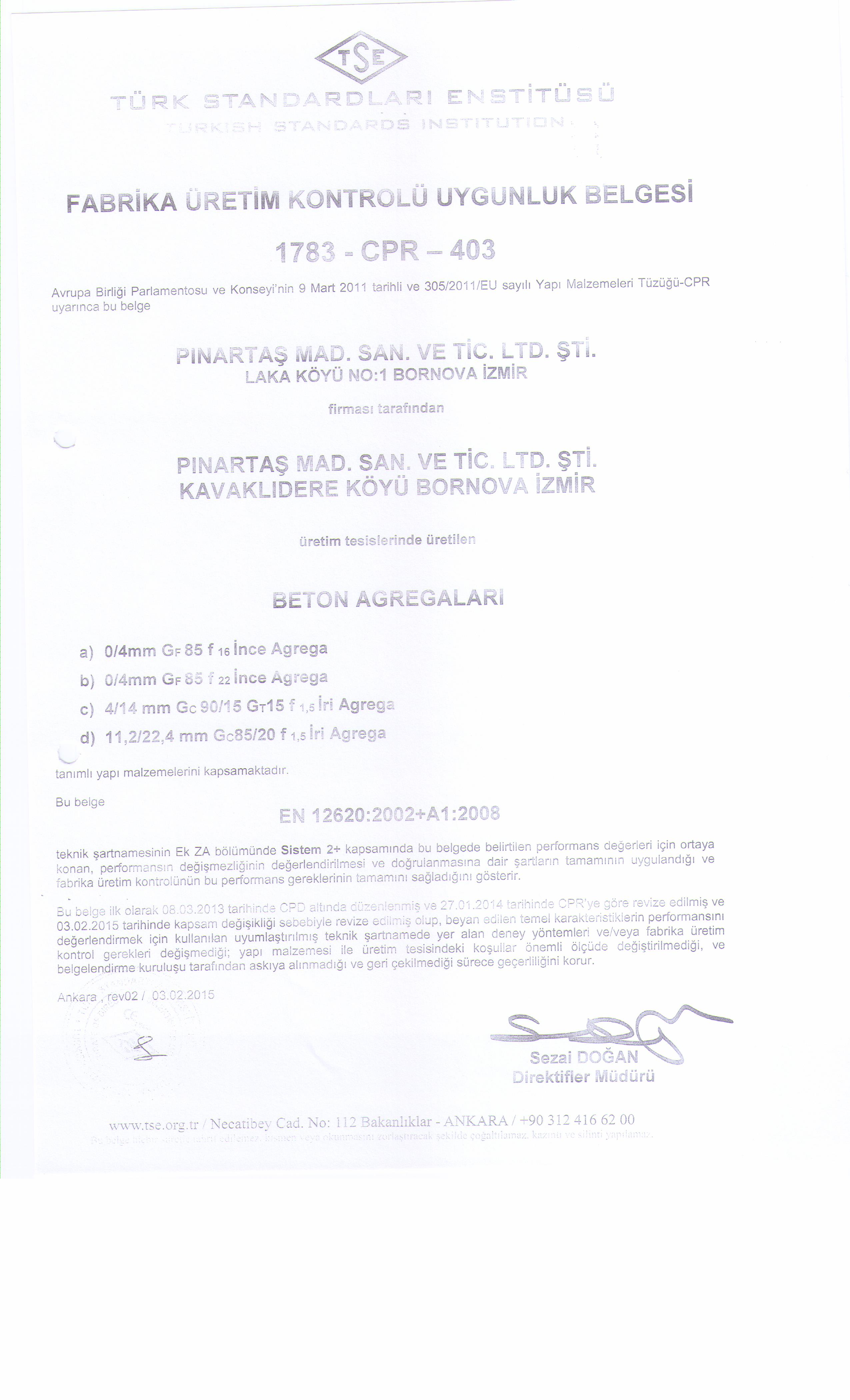 Tesislerimizde üretilen ürünler, TSE stadartları dahilinde üretilmektedir. Üretimimizin her aşamasında kalite en önemli unsur olarak ele alınmaktadır. Düzenli laboratuvar kontrolleri ile kalitenin devamlılığı sağlanmaktadır.